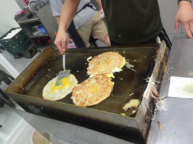 趁機偷拍一張老闆在煎的過程,看看這巨大的蛋餅才賣30元!怎能吃不飽,只能說吃完超爽!