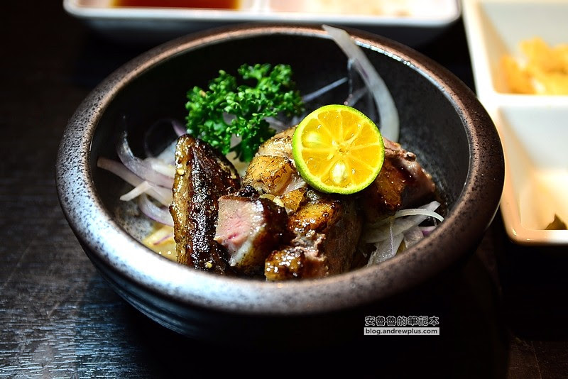 上圖左下角的是蘭陽櫻桃鴨,師傅烤的手法有點不太一樣!分成了兩段式的烤法,據說是要先去掉鴨肉奇怪的味道,第二段的烤法是為了讓鴨肉的美味能夠呈現出來!感覺沒有事先調味,味道較為清淡,可以搭配店家的醬料一起食用。切塊的鴨肉口感較扎實,慢慢咀嚼感受油脂在嘴裡擴散的滋味