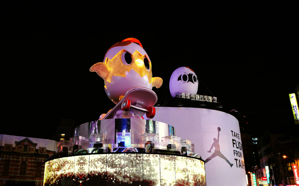 這次台北市長柯文哲要雪恥啦,請出藝術家不二良,打造以可愛、個性洋溢的小奇雞呈現朝氣活力,為燈