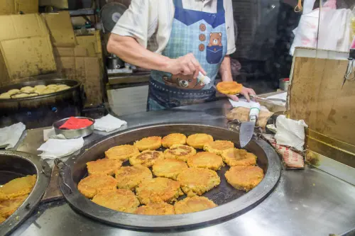 ▲番薯粿會先用油較多的鍋子稍微炸一下後,