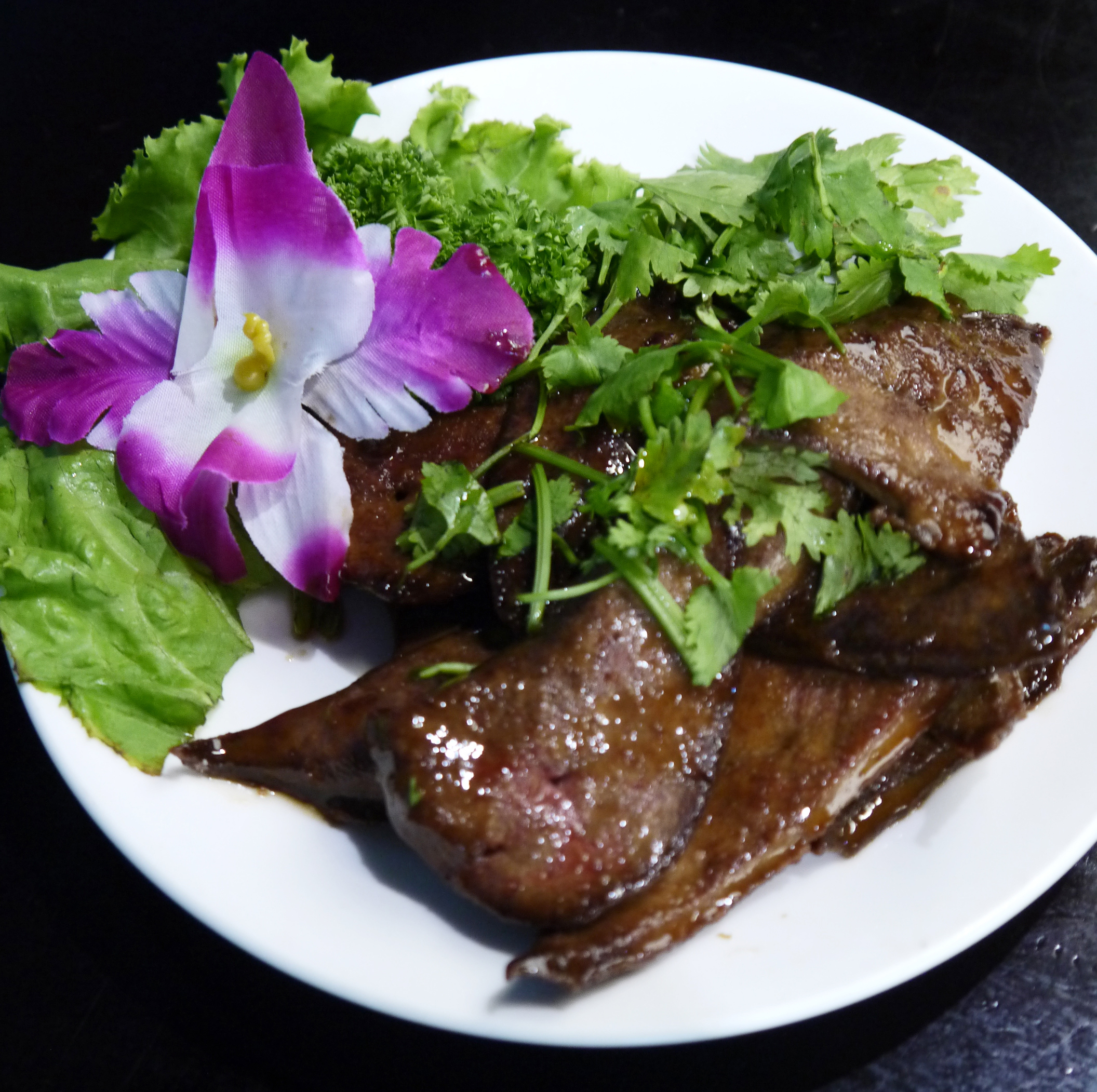 「煎豬肝」100元 / 聽說這是在康熙紅極一時評價甚高的一道料理,是一種帶甜的重口味,好吃!但這道一上菜可能要趕快吃,像我一直拍照都冷掉變硬了。王彩樺在康熙有介紹樂利路總店,想看節目片段,請google【康熙來了2011-09-20 超道地台灣熱炒美食】