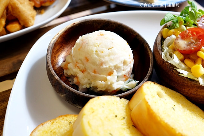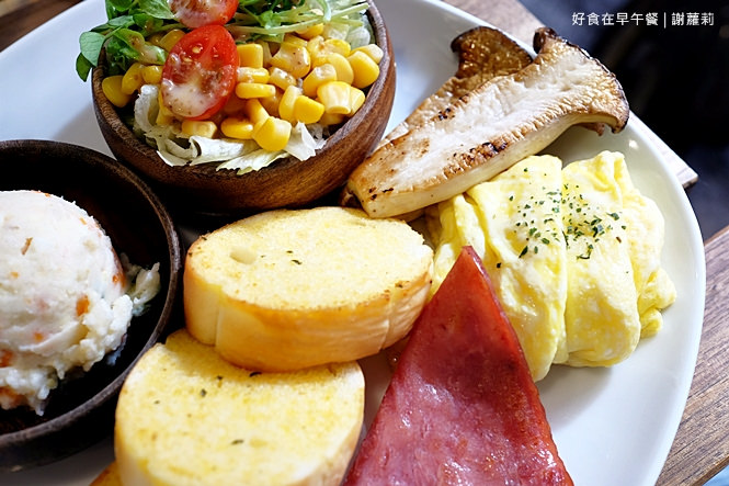 超豐盛一盤,有薯泥沙拉、生菜沙拉、杏鮑菇、火腿、嫩蛋及香蒜法國麵包,依一般女生的食量,算是可以吃得蠻飽足了,這樣一盤竟然只要110大洋,你說說看?!這樣不推薦說得過去嗎?!(路人:你到底要說幾次?!XD)