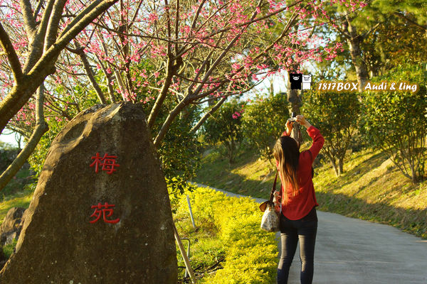 沿著山路,漫步而上,梅苑裡梅花與櫻花各自美麗芬芳。