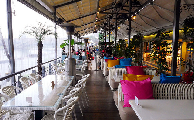 一整排的餐廳望過來,就屬水灣的峇里風最討喜,
