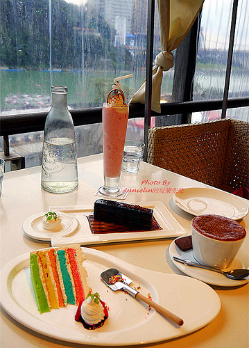 在被菜單上的甜點燒得亂七八糟之下,便要求服務生先上蛋糕和飲品!