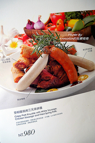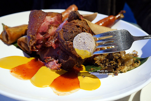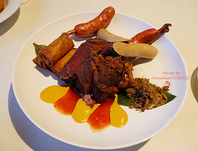 脆皮豬腳,牛肉腸,德式帶骨香腸,炸芋絲春捲