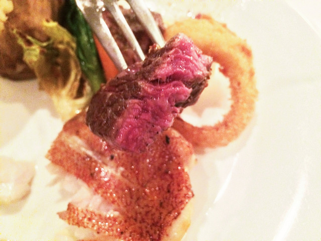 雖然斷面是深粉紅,但實際味道上,三分的熟度吃起來像五分