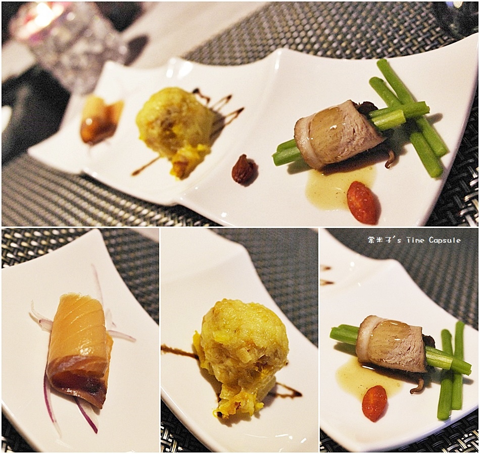 片狀的櫻桃鴨肉片捲上了蘆筍味道清爽,