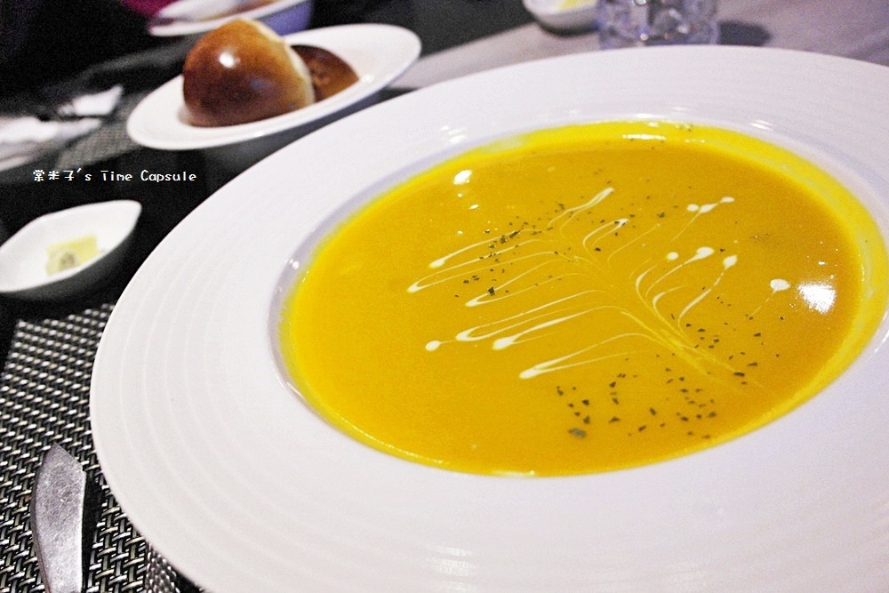 主廚推薦當天濃湯是"南瓜海鮮濃湯"!!