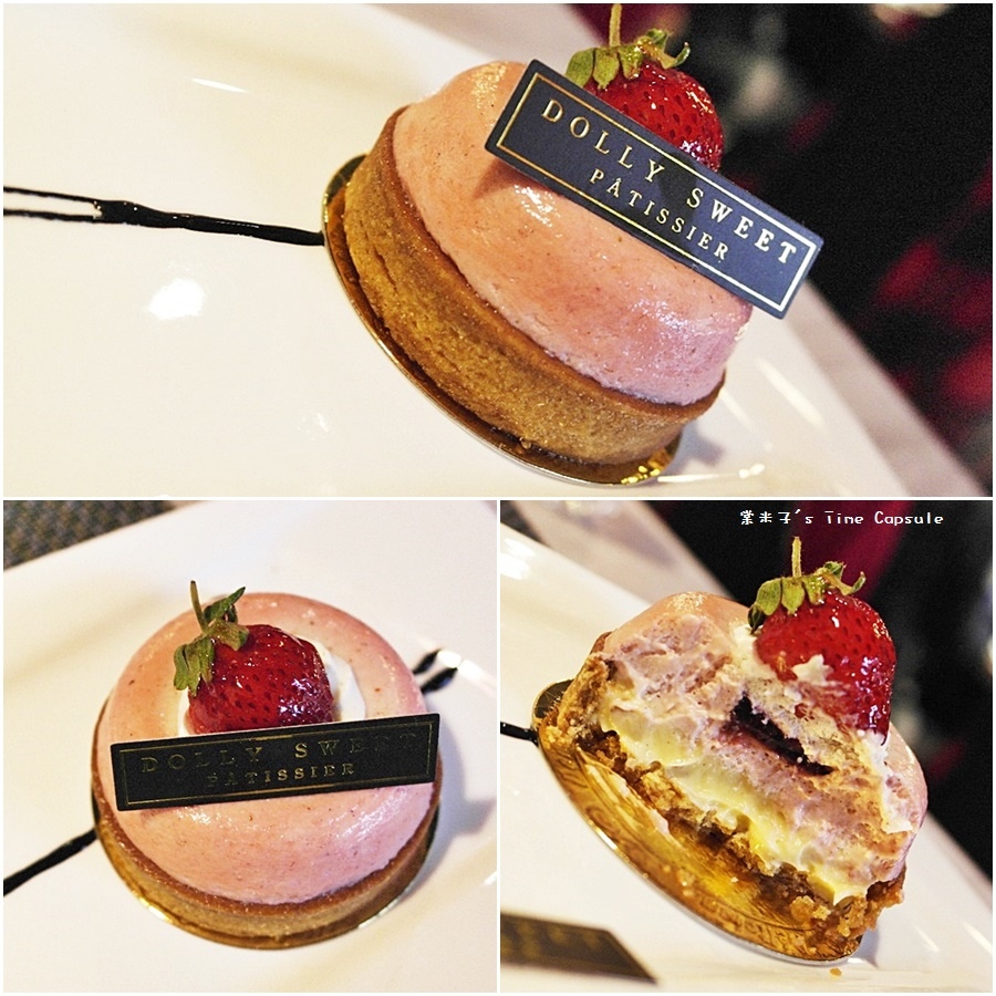 甜甜的脆硬塔皮、細緻的草莓慕斯,加上裡面包藏的酸甜內餡和香濃卡士達,