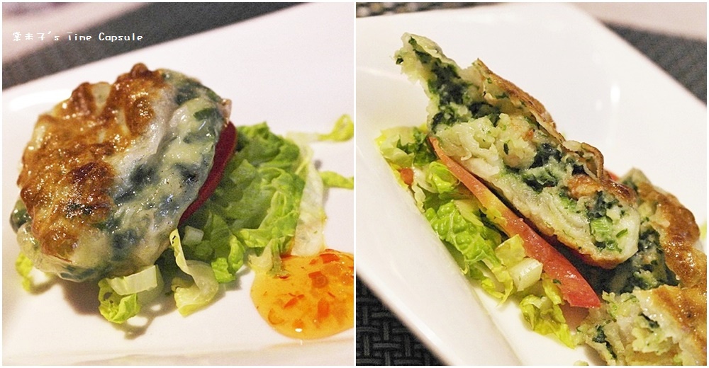 薄博外皮包著蝦仁和韭菜,鮮味中帶有韭菜的辛香,加上甜甜的泰式醬汁,