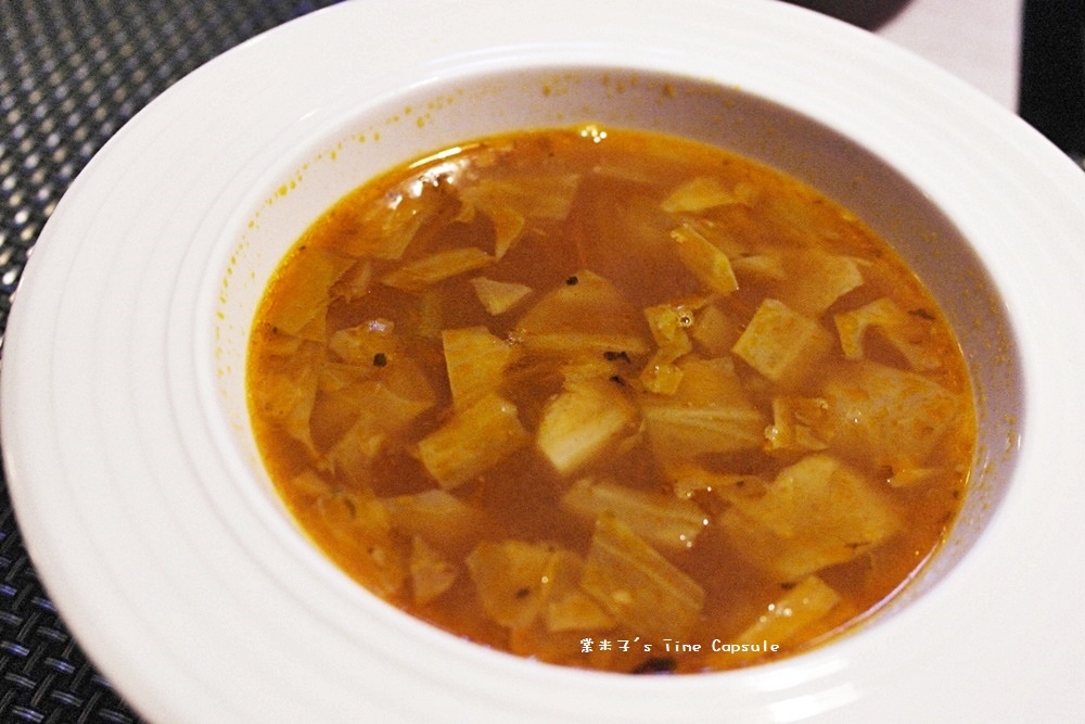 湯品有濃湯和清湯的選擇,當天的清湯是"羅宋牛肉湯",