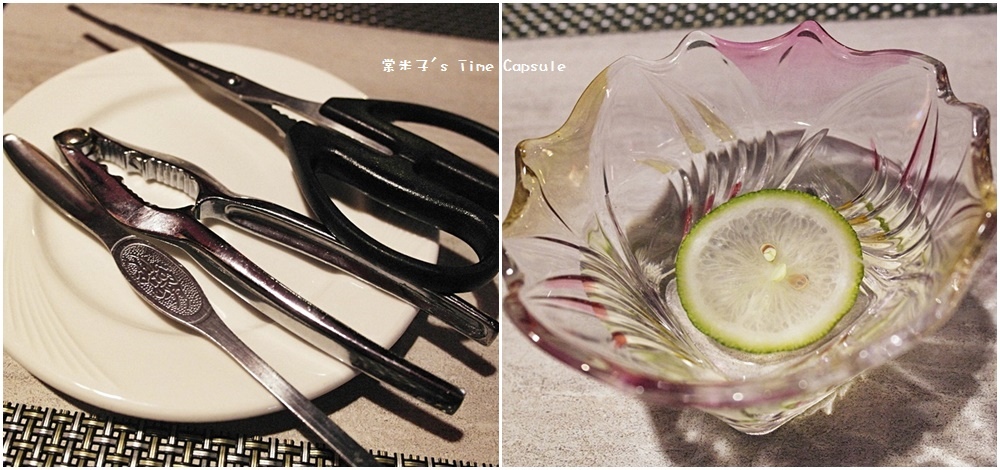 先送上的是淨手的檸檬水和吃龍蝦的各種傢私,