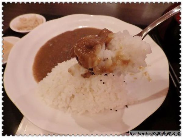 據說是蠻多客人喜歡的人氣料理!舀了一匙入口,帶有嚼勁的牛絞肉與日式咖哩組合,有著濃郁的味道,米飯都是用壽司米,吃起來Q軟的,整個搭配很好。