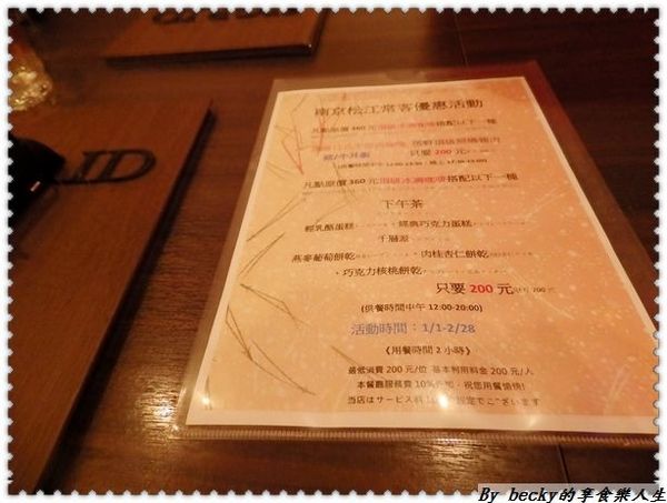 而現在也有活動喔!餐點配冰滴200元(加一成服務費)超值組合;下午茶時間也是相同的,任選蛋糕或餅乾與冰滴咖啡組合,也只要200元喔!優惠期限到2月底;不過,跟各位說~看becky文章的朋友及粉絲們則可以無限期的優惠喔!這麼好康,要趕快去試試!