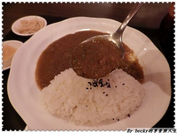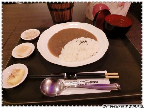 在聊天同時,送上了餐點~SIGRID特製牛絞肉咖哩,除了主餐外,還有附贈三樣小菜及湯品。