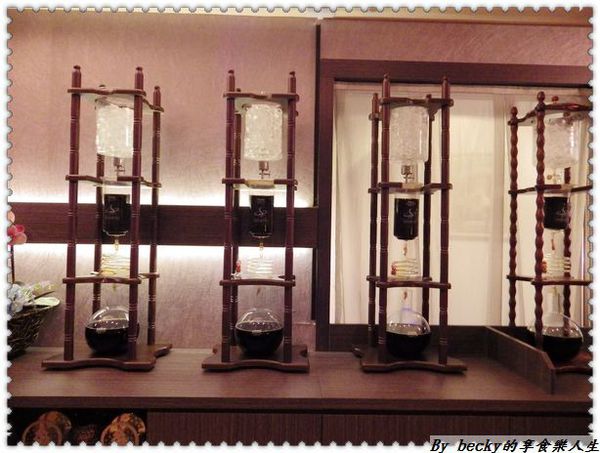 在店內一角有著4座大型冰咖啡濾器,還可以看到咖啡正在滴速中,這個冰滴咖啡要經長時間慢速萃取,具有單寧酸含量低的特色比起一般壓力式咖啡機萃取出來的咖啡刺激性較低。