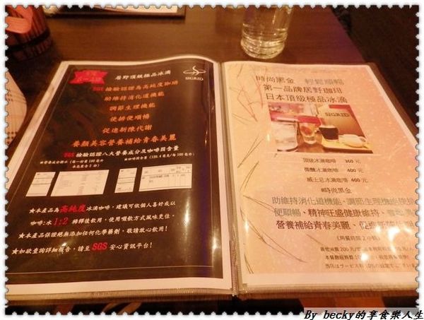 入座後,送上的是水杯及菜單,裡頭有著冰滴咖啡的介紹喔!