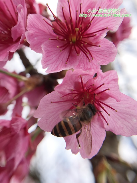 蜜蜂正在櫻花上採花蜜,這美麗的景像肯定要拍下留念