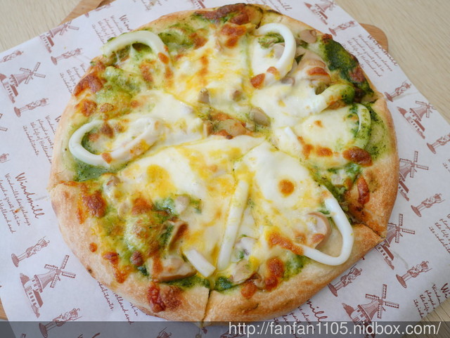 很特別的口味,類義大利麵青醬的口感,透抽超軟嫩,可惜餅皮是外厚內薄的餅皮,如果做成薄皮披薩多了餅皮的脆口感會更加分