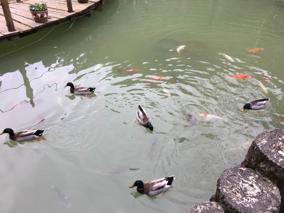 旁邊一堆鴨子跟鯉魚