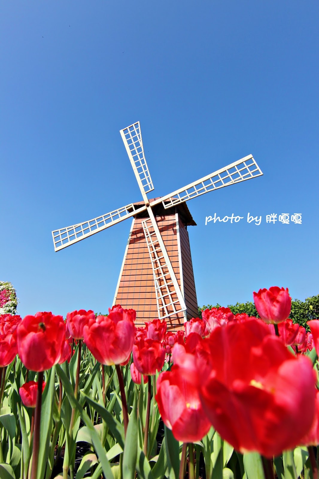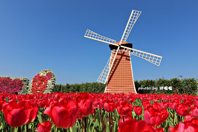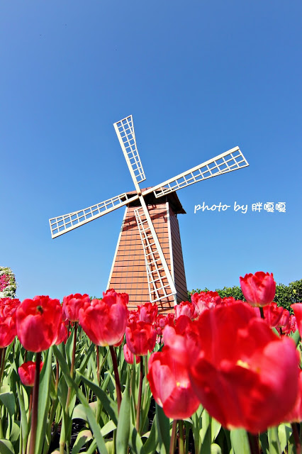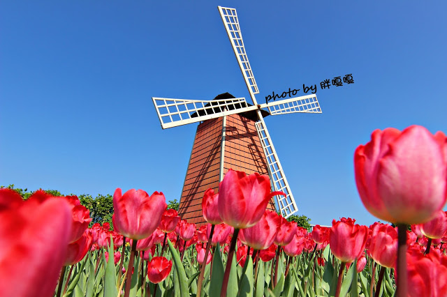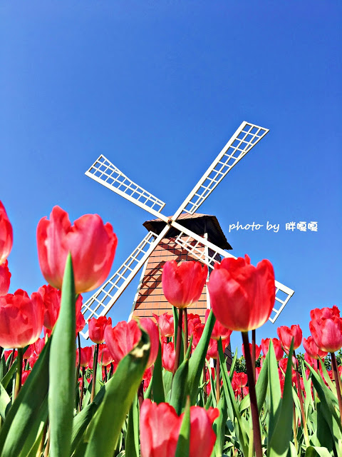 風車與鬱金香的相互襯托