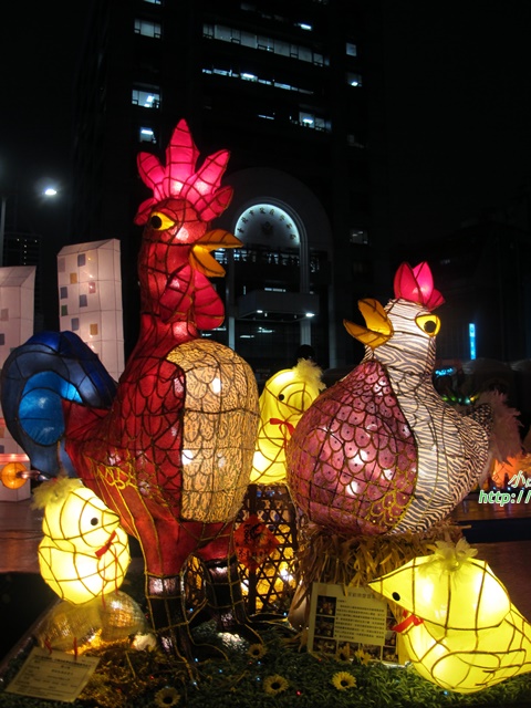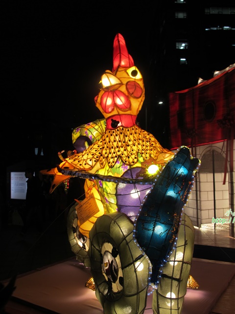 臺北燈節舞台上有著許多扮著公雞模樣的舞者