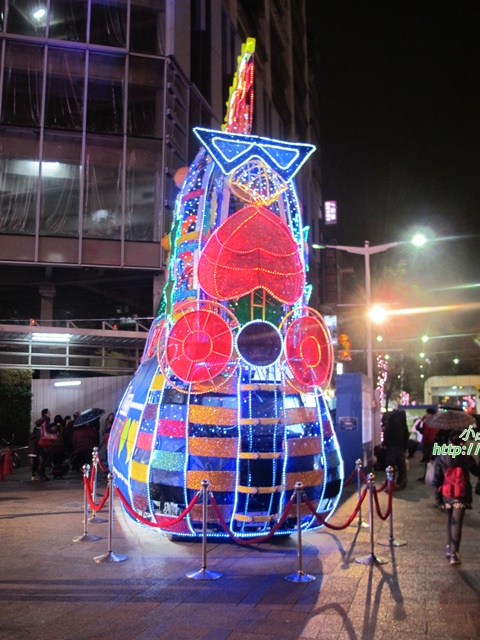看完表演走出外圍看到許多大朋友、小朋友圍繞著白色小雞燈