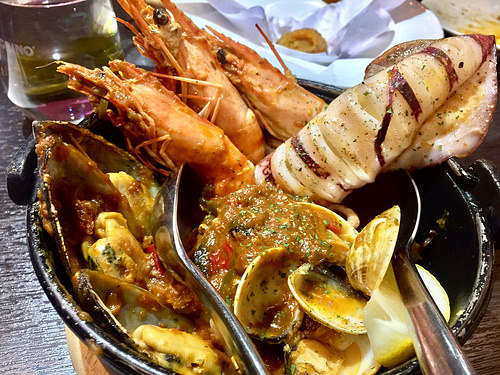 有花枝、蛤蜊、魚、淡菜、蝦子等