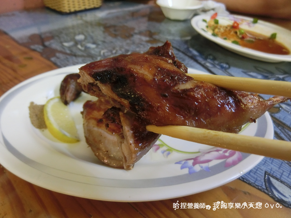 一隻120元其實不便宜,不過想說都來了要嚐鮮一下,所以點了一隻大家Share,沒想到它肉質蠻結實的,很有彈性,就像土雞的口感,還不錯吃!