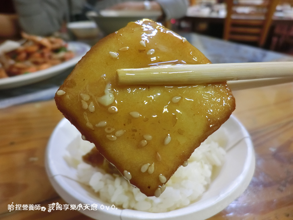 天啊~它的醬汁也太入味了吧!!滿滿梅子香氣撲鼻而來,而它的豆腐是選用雞蛋豆腐,吸附醬汁吃起來滑嫩又有濃郁梅子味,超下飯的