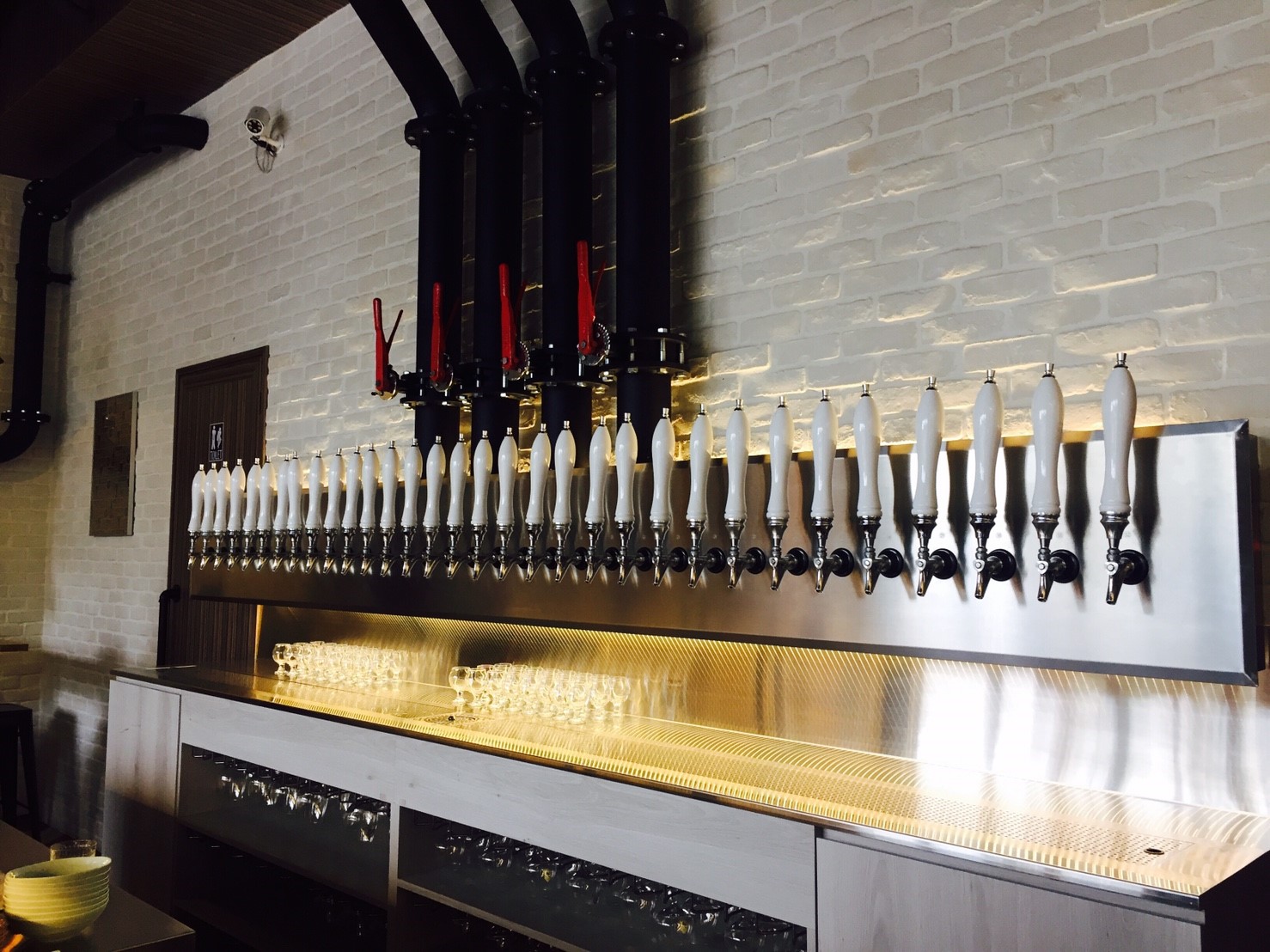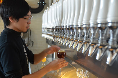 店內32種自家精釀獨有口味的啤酒隨傳隨到!