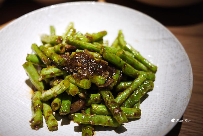 【紅咖哩炒長豆】辣度1 - 與磨成粉的紅辣椒拌炒後,長豆吸飽了醬汁的香氣,看似很辣,其實還好咧。