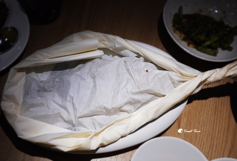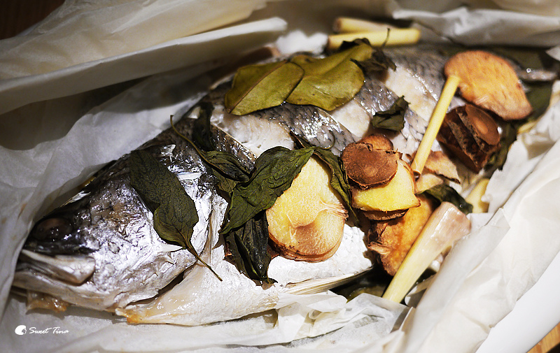 【烤紙包魚】不辣 - 有青辣椒及香料二種選擇,我們選擇的是香料風味,紙包魚因為是需要較長時間蒸烤,所以想品嚐這道美味料理請有一點點耐心哦!