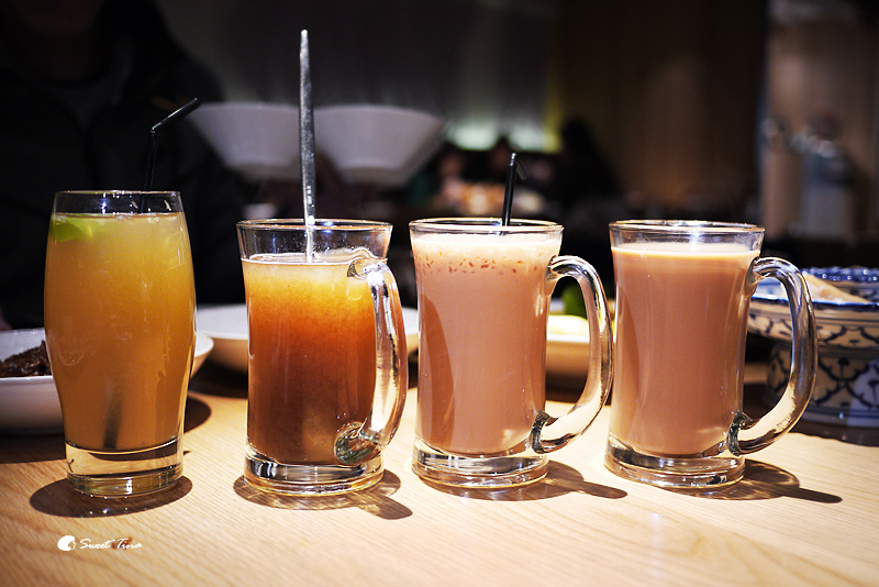 【飲品】饗泰多檸檬茶、熱羅旺子汁、冰泰式奶茶、熱泰式奶茶(左->右)