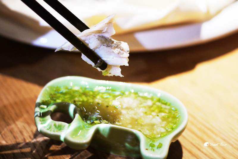 剪開後,香料覆蓋的鱸魚,香氣四溢呢! 而且一定要先品嚐原味,因為魚肉夠鮮甜,不沾醬時的原味就很好吃了呢!