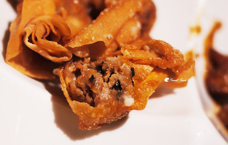炸餛飩 (微辣) - 裡頭的餡料可是採用打拋豬肉呢,咬開後滿滿的香氣在裡頭!