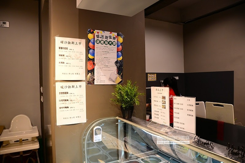 ▼櫃台旁的大大冰櫃裡面擺放著店內銷售的各式商品,像是罐沙拉、碗沙拉、飲品、甜點等等,不知道吃什麼的朋友可以參考一下實物再來選擇!