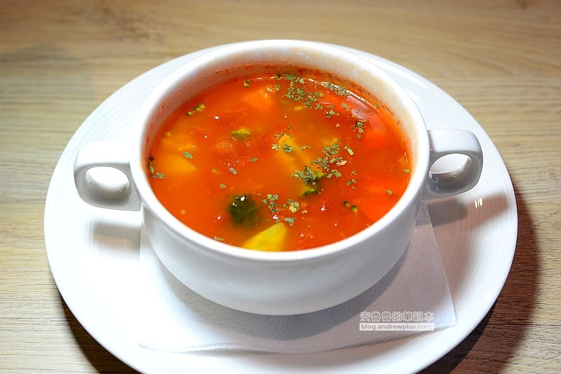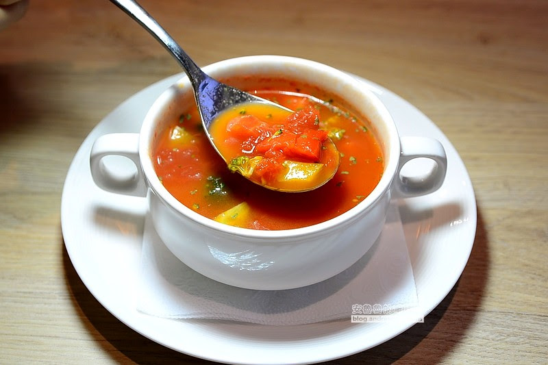 ▼這碗湯的酸度稍微高了些,但喝得出來是番茄所熬出來的酸味,裡面的番茄丁還挺豐富的!喜歡酸的朋友應該會很容易一口乾掉!