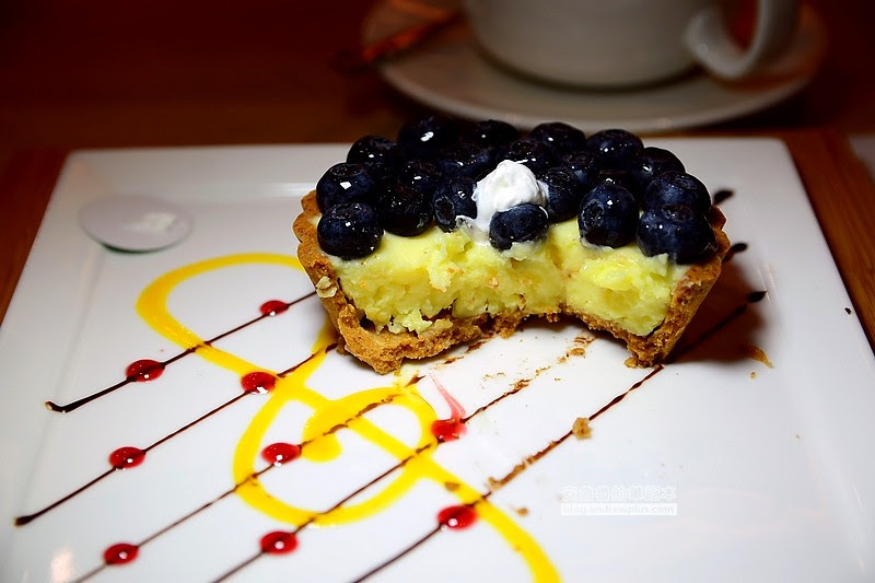 內餡吃起來像是椰香卡士達,上層撲滿了微甜的藍莓,塔皮搭配的是餅乾派皮