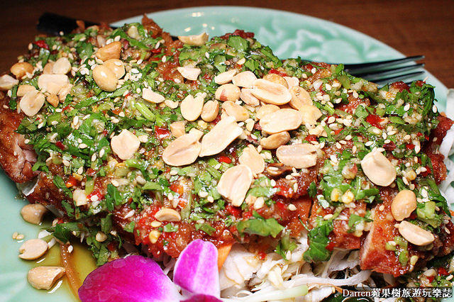 同樣是來吃泰國料理一定不能錯過的椒麻雞,使用雞腿肉外皮脆脆雞肉多汁柔嫩,酸辣醬汁調得很不錯好吃誤