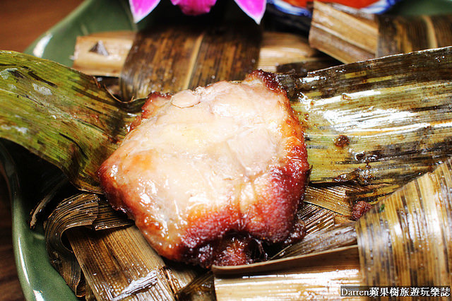 在服務人員打開芭蕉葉的瞬間就有股清香散發出來,魚肉經過烤熟肉質鮮美加上表面佐料微酸很下飯有夠好吃