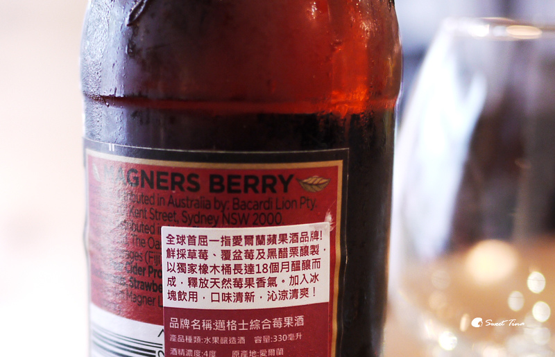 【精釀啤酒(邁格式綜合莓果酒)】TIna還滿喜歡水果調製的酒,所以選了一款綜合莓果酒,酒精濃度在4%,是款適合女孩兒喝的酒哦,酸酸甜甜帶點氣泡感,還滿好入口的。