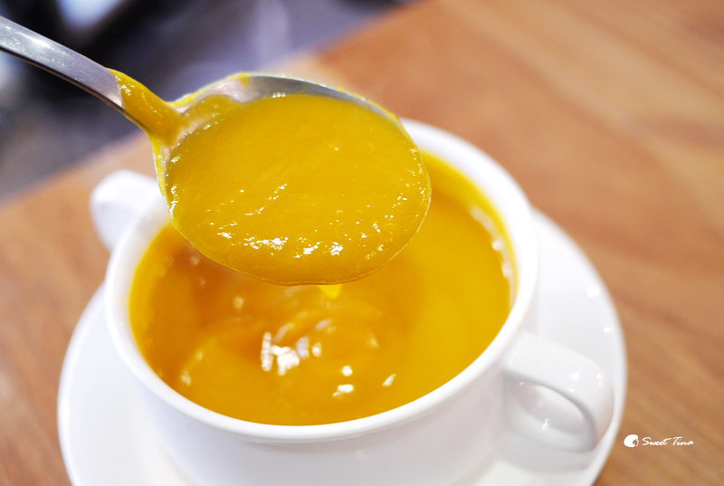 【南瓜湯】這南瓜湯,用料也太飽滿了,完全沒作任何芶芡就非常的濃,說是南瓜泥也不為過。