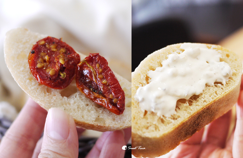 附上的二種佐料 - 油漬番茄&酸奶醬,哇~~加上後整個風味好不一樣,好想把佐料買回家啊! 油漬蕃茄酸酸甜甜的非常開胃、而酸奶更是酸度非常剛好,二種醬我都粉喜歡!