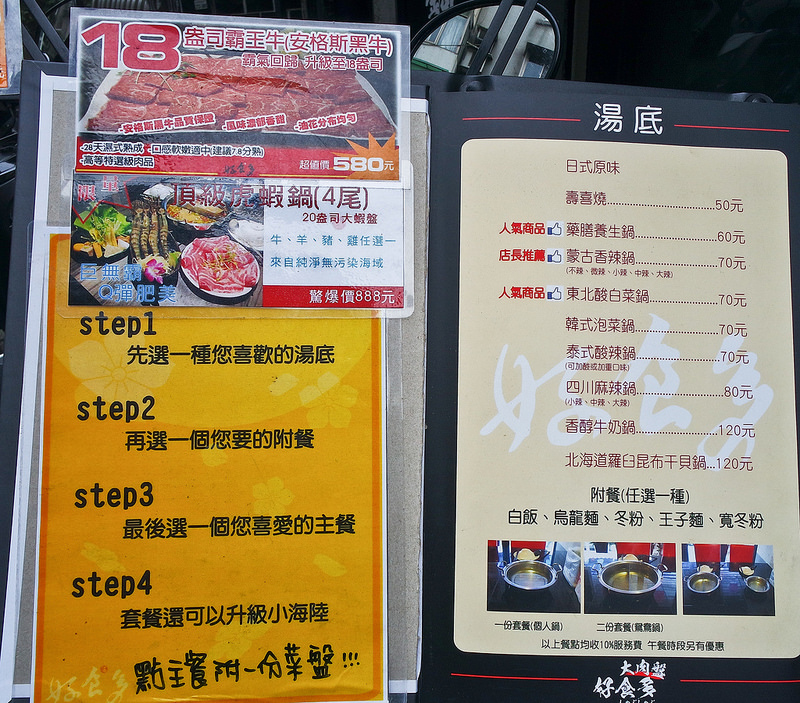 在這邊首先是先選湯底,然後選個附餐, 之後選完主餐即可
