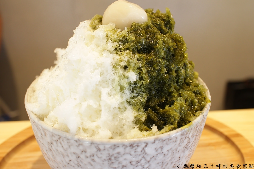 抹茶微甘微苦香味清雅伴著奶香,入口高雅的香味蔓延擴散,藉由混奶調配的糖水讓整體變得更加調和卻又不會過於甜膩,兩種顏色混合後讓剉冰染上一抹粉綠色澤,而口感依然保持綿密,跟抹茶混奶剉冰搭配後香味更加鮮明。