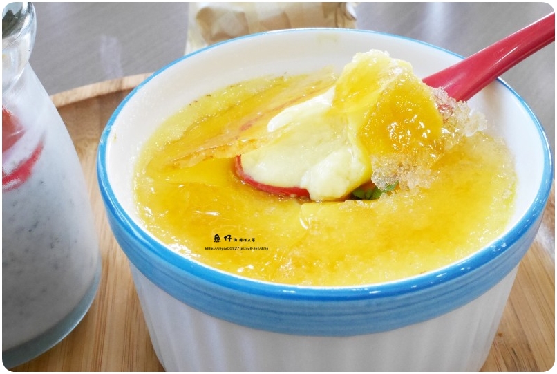 上頭一層金瑩剔透脆脆的焦糖,破壞後才能吃到下面綿密滑順口感的布蕾