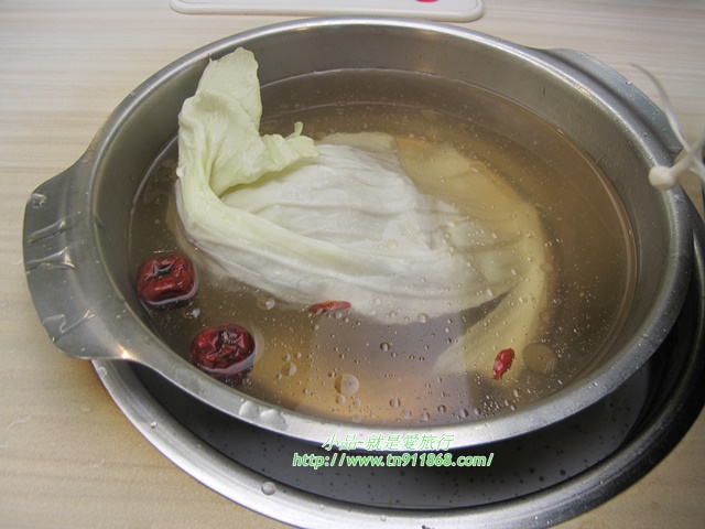 素食鍋則會放一大片高麗菜、紅棗、枸杞當湯底