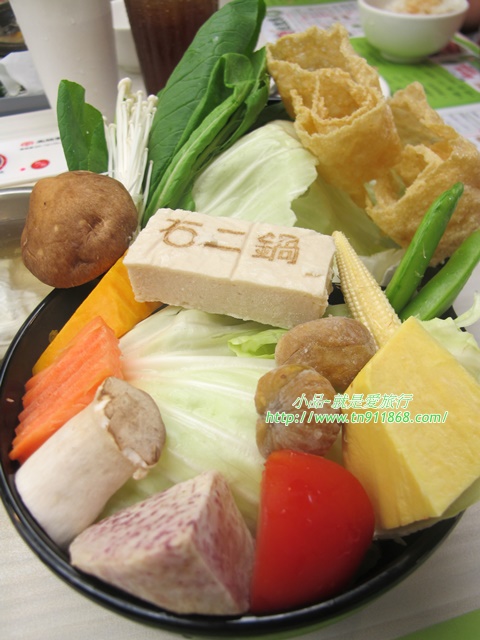 素菜盤,有著豆腐、蕃茄、南瓜、芋頭、紅蘿蔔、豆皮、玉米荀、金針菇、高麗菜、、等